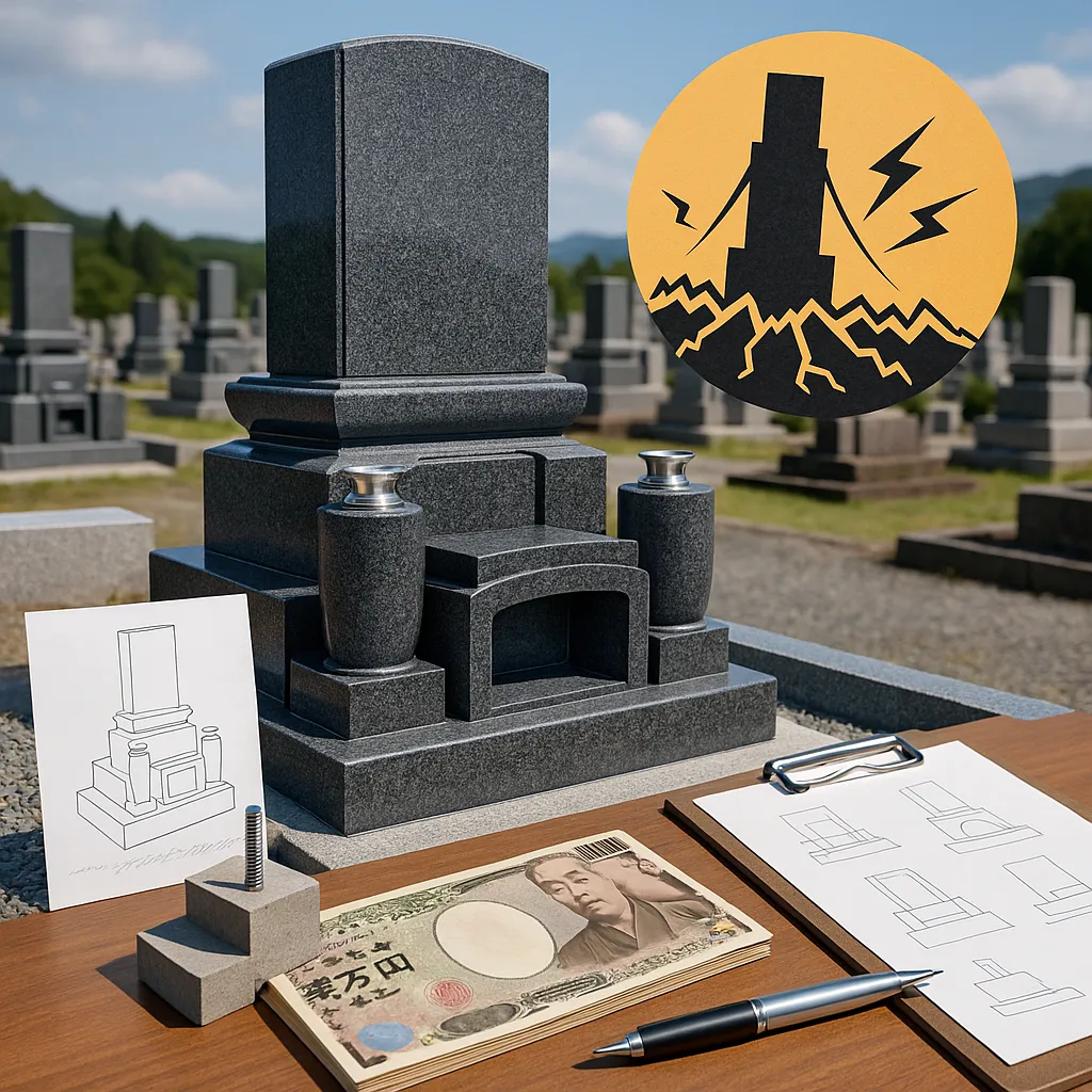 ポイントは「装飾は分割固定」「荷重は均等」。この考えでいくと、お墓のデザインを攻めても耐震は守れるよ。